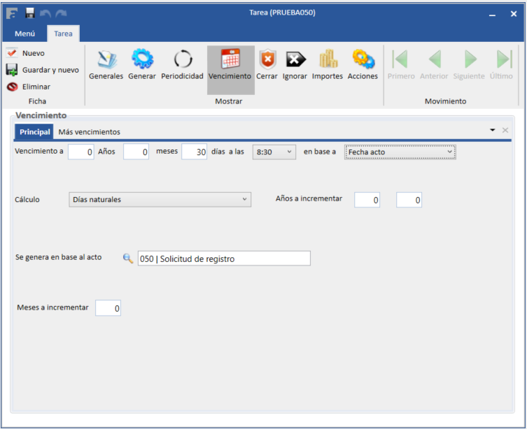 3.1 La fecha del acto que hayamos configurado en Tarea -> Generar y sea el desencadenante de la tarea