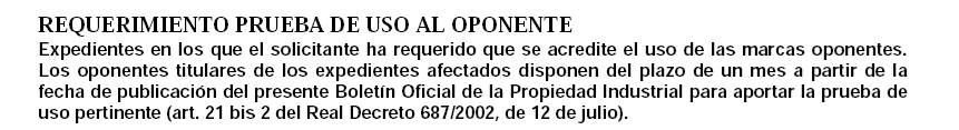 En el Boletín de España (BOPI) se publican los actos identificados como “RPU – Requerimiento prueba de uso al oponente” y “APU- Remisión prueba de uso al solicitante”, que hacen referencia a las distintas fases del procedimiento de prueba de uso en España. A continuación, se detallan ambos procedimientos.