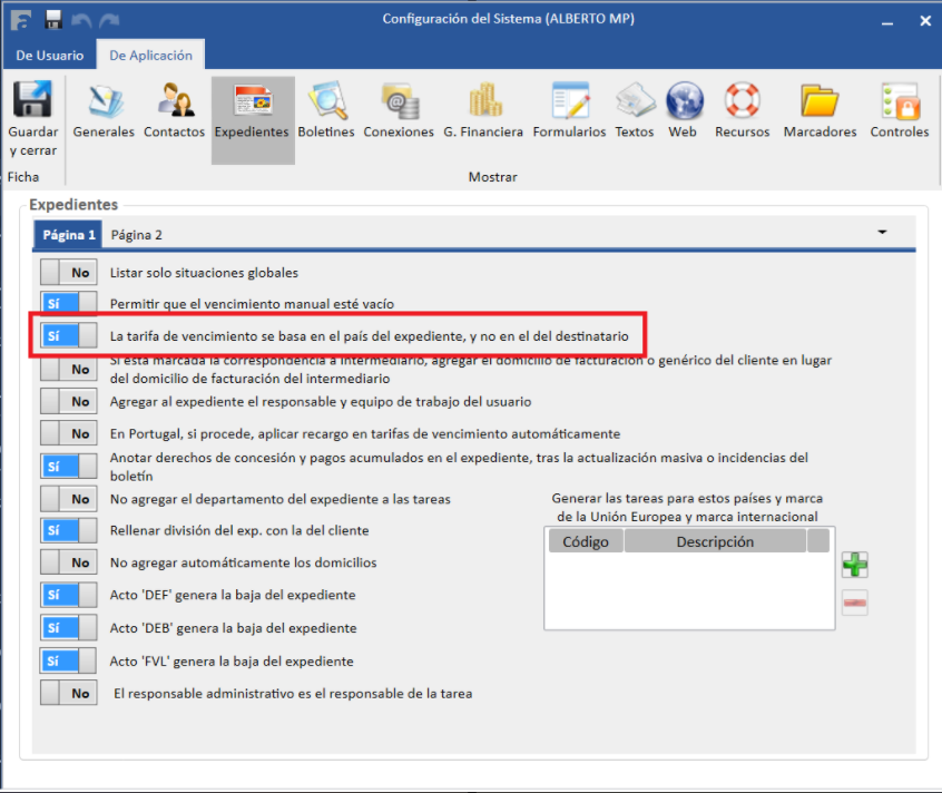- Esta configuración es especialmente importante en despachos que gestionen múltiples expedientes en diferentes países para los mismos clientes, ya que cada expediente tendrá su propia estructura tarifaria.