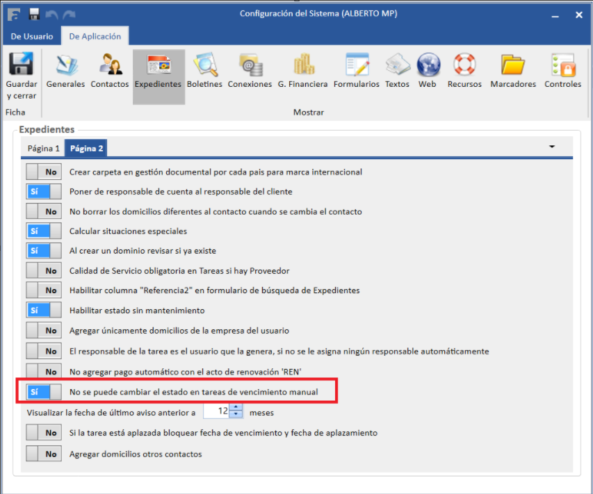 - Si necesitas cambiar el estado de un expediente con tareas manuales pendientes, tendrás que resolver esas tareas primero o desactivar la opción en Configuración del Sistema.