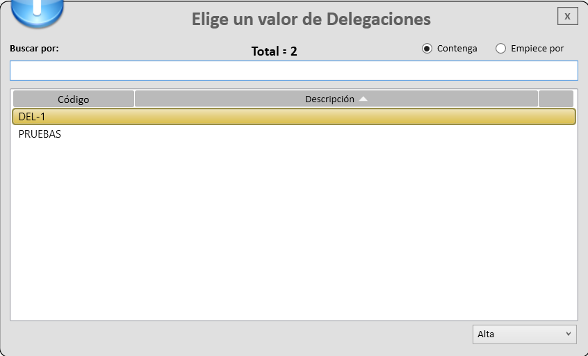 Activado: cuando se encuentra activada esta opción aparece esta ventana, si no esta activado la delegación puede permanecer vacía.