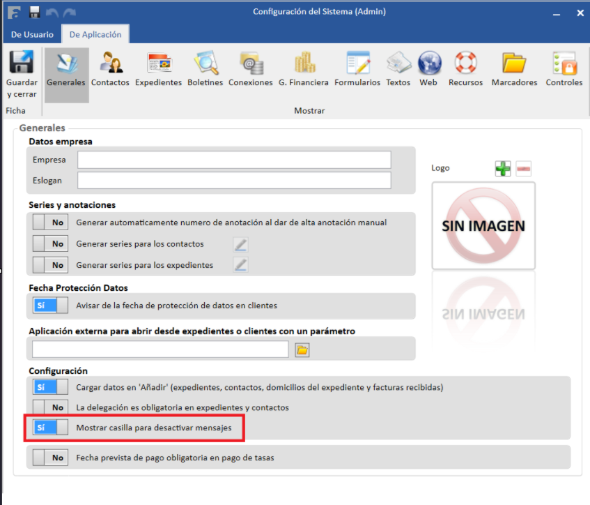 En la pantalla de Configuración del Sistema, existe una opción que permite mostrar una casilla de verificación en los formularios de envío de mensajes. Esta casilla brinda a los usuarios la posibilidad de desactivar temporalmente la recepción de mensajes sin necesidad de modificar configuraciones globales.
