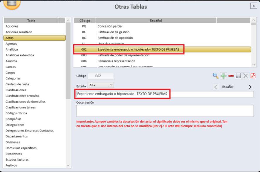 Otras Tablas – Actos