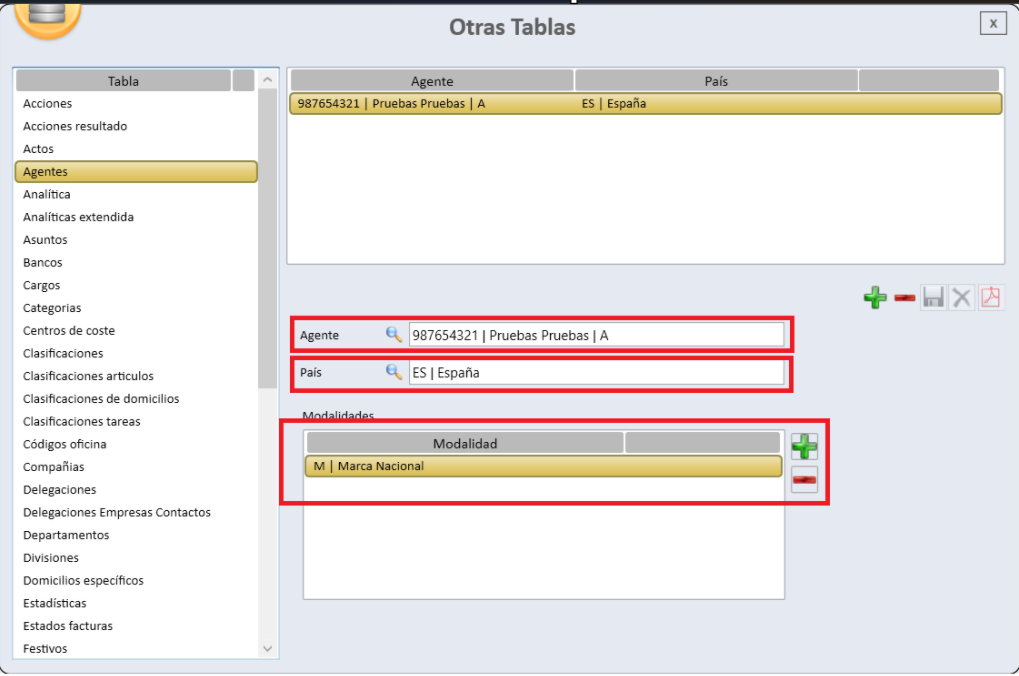 La ventana Otras Tablas → Agentes permite la asignación automática de un agente en función de los criterios o restricciones previamente definidos en dicha sección.