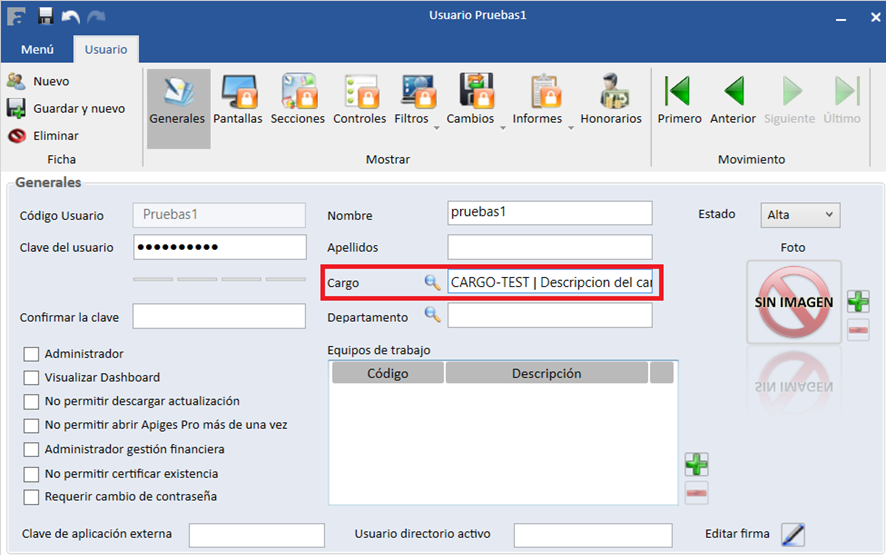 Apiges Pro permite la creación de cargos con el fin de asignarlos a cada usuario y facilitar su identificación de manera clara y organizada.