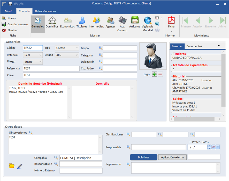 Asimismo, Apiges Pro dispone de un filtro en el apartado Contactos que permite localizar de forma ágil aquellos registros que pertenecen a una compañía específica.