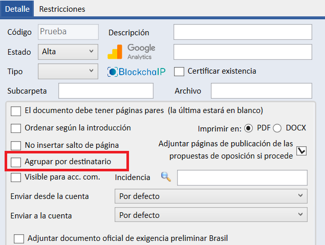 c) Finalmente, hay que indicarle a Apiges Pro que, para este texto, se desea agrupación por destinatario. Marcamos entonces esta casilla.