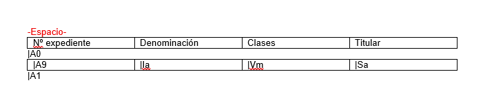 b) Hay que indicar, en el texto, cuándo empieza el cuerpo y cuándo termina, de forma que Apiges Pro sepa qué parte debe incluir al principio, qué parte se repetirá tantas veces como expedientes haya, y qué parte se incluirá al final del texto.