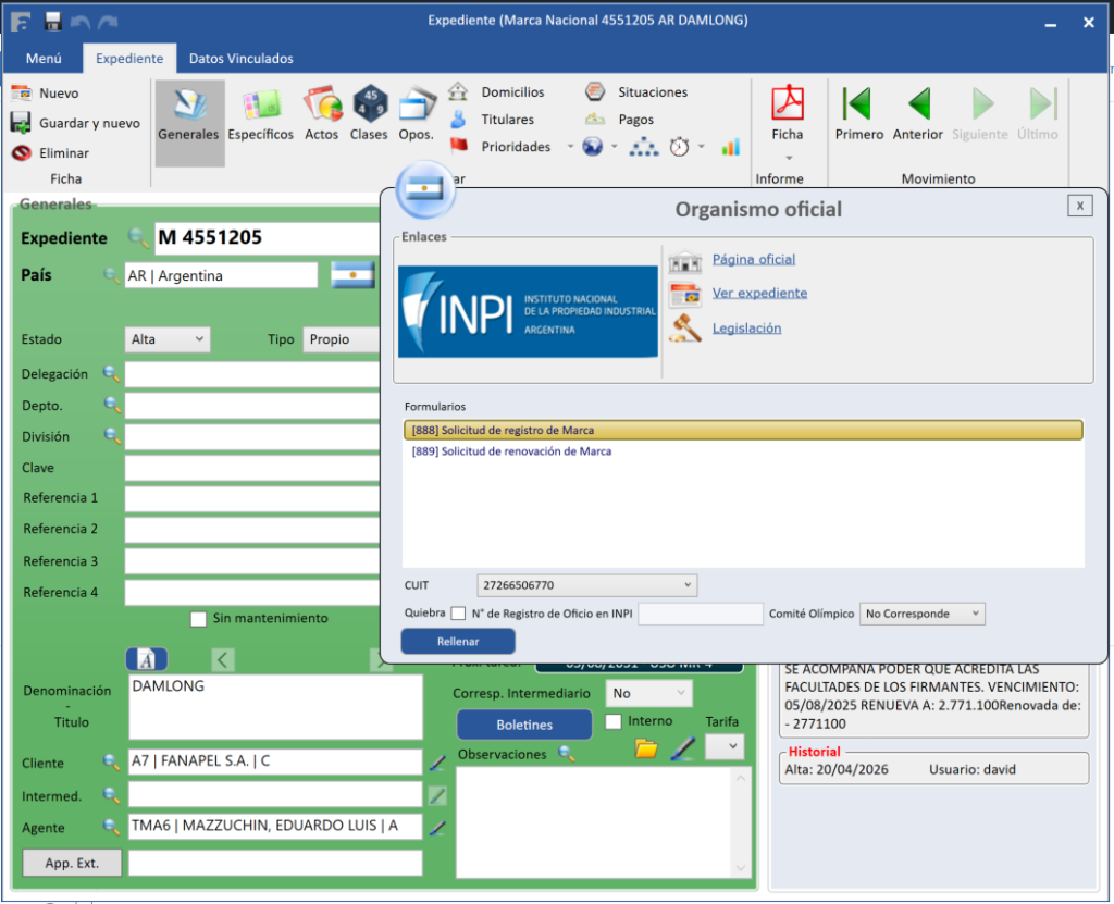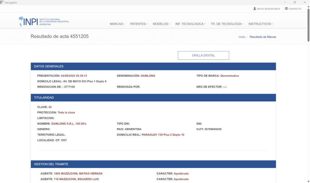 Desde Apiges Pro, puedes visualizar el expediente en el INPI de Argentina.